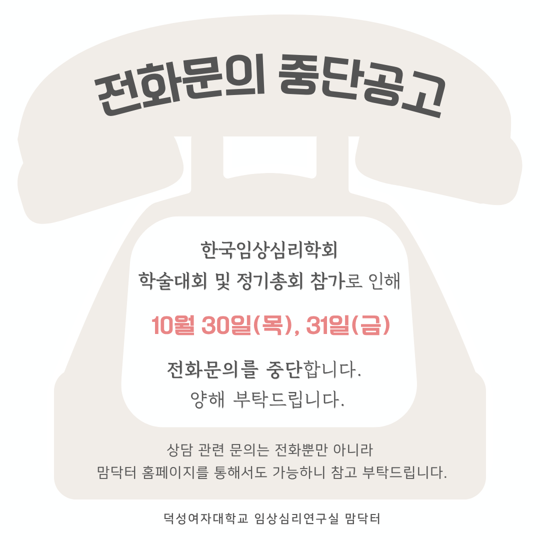 #덕성여대 #임상심리 #연구실 #맘닥터 #mamdoctor #전화문의 #중단안내