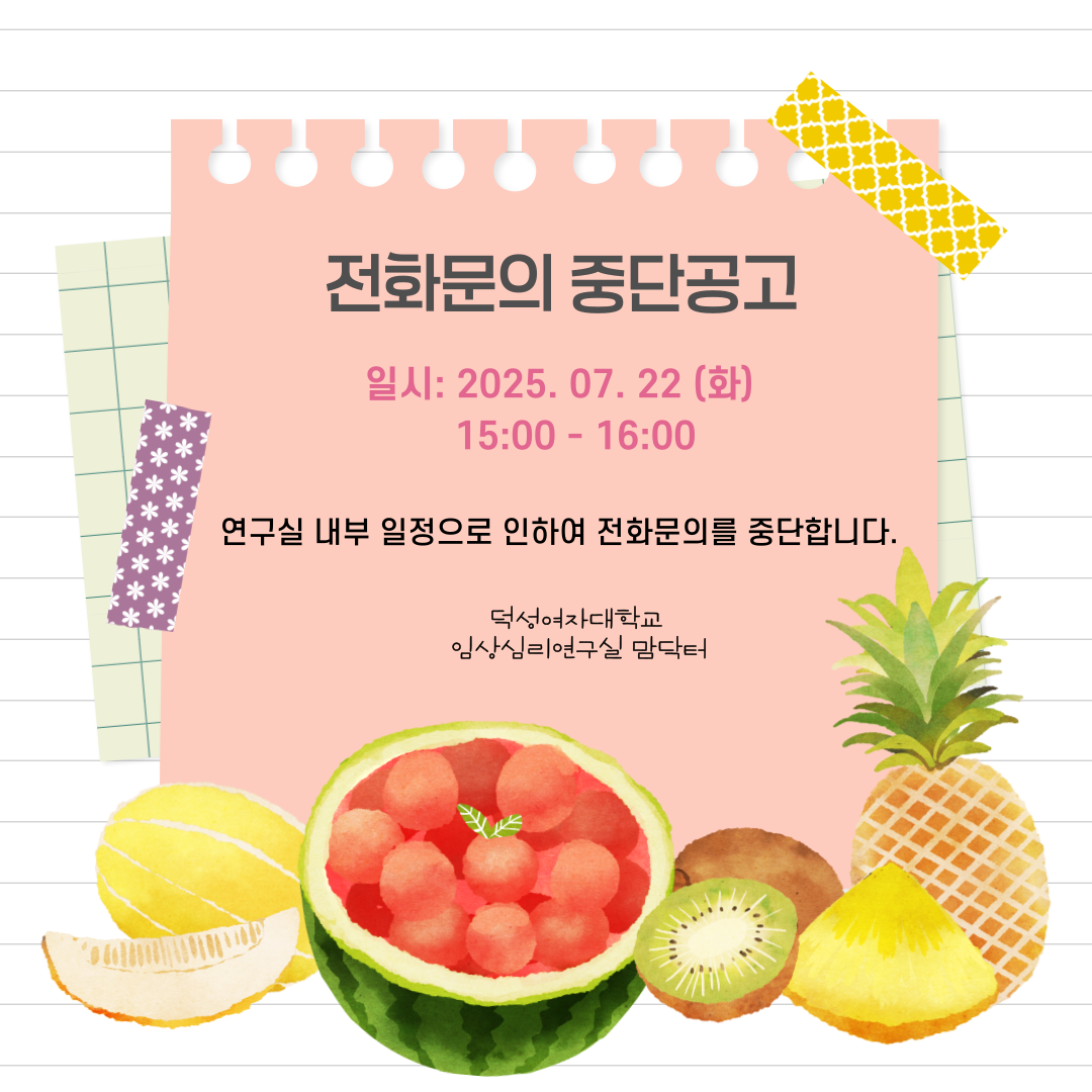 #덕성여대 #임상심리 #연구실 #맘닥터 #mamdoctor #전화문의 #중단안내